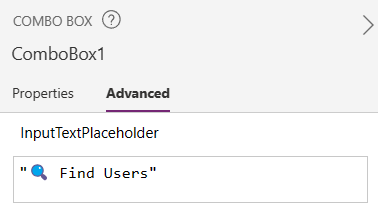 ที่ Combo box จะมี Properties ชื่อ InputTextPlaceholder อยู่ เราสามารถแก้ไขข้อความนี้ได้ ค่าตั้งต้นจะเป็นคำว่า “Find items”