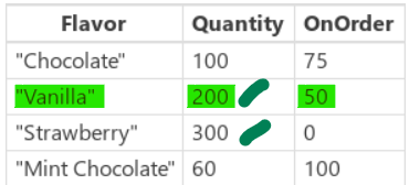 LookUp(IceCream, Quantity > 150, Quantity + OnOrder)