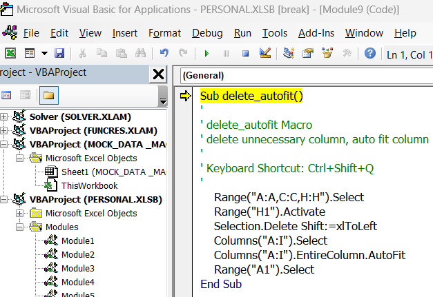 copy code ไปรวมกับ Macro ที่ใช้ delete column, auto fit column