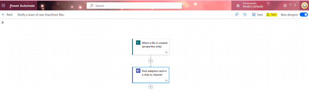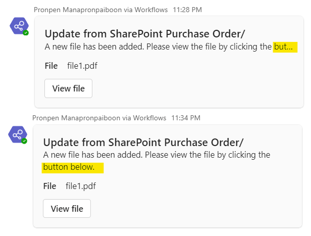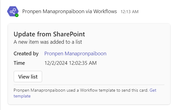 Template นี้จะ post ข้อความไปที่ chat หรือ channel ใน Microsoft Teams เมื่อมีไฟล์ item เพิ่มเข้าไปใน SharePoint list ที่เราระบุ