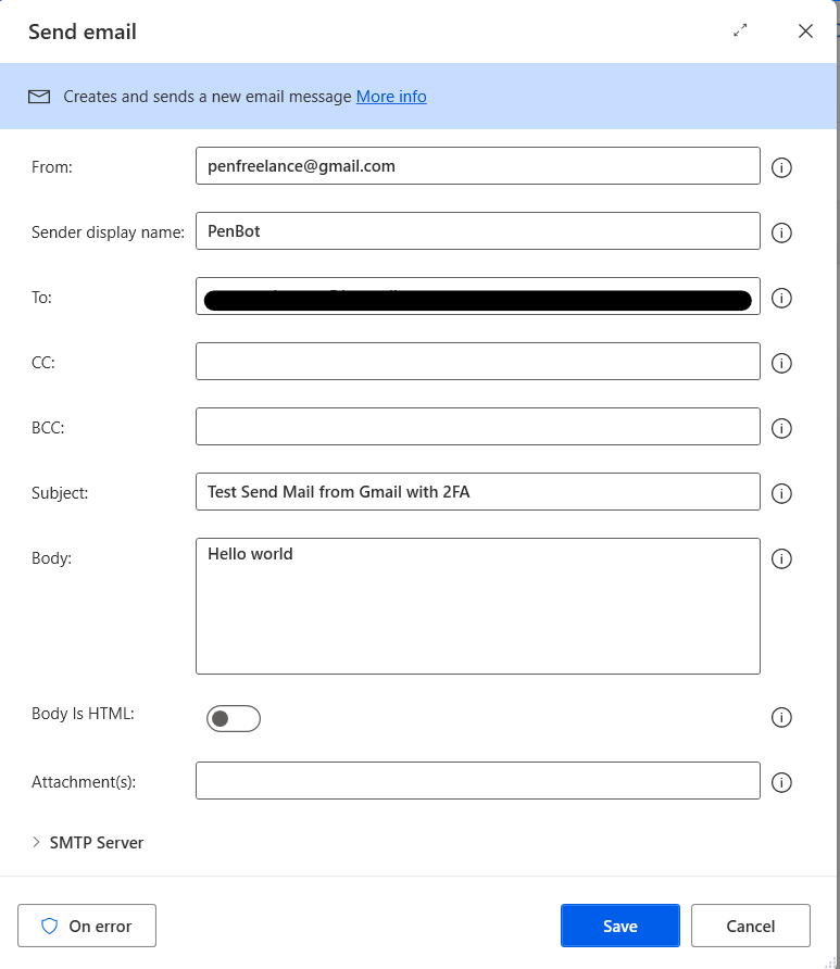 ไปที่ Power Automate Desktop ลาก action “Send mail” ไปที่ workspace