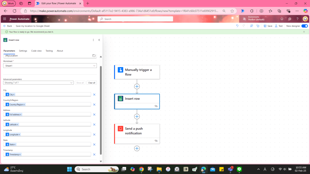 ไปที่ https://make.powerautomate.com/ คลิก Templates แล้วพิมพ์คำว่า ‘save my location’ ในช่อง search จากนั้นคลิก ‘Save my location to Google Sheet’ ตามรูปภาพด้านล่าง