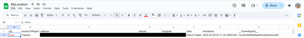 สร้าง Google Sheet ประกอบด้วย column
