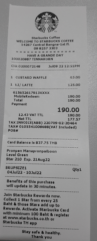 Store Name, Store Address, Contact Number, Date and Time, Transaction ID, Total Amount, VAT Amount, Payment Method, Item List for each item which consist of: Item Name, Quantity, Price