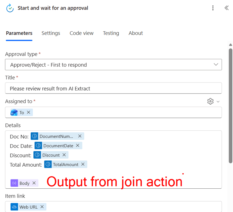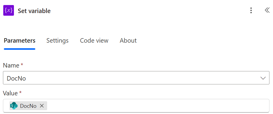 DocNo: select dynanmic content ‘DocNo’ from ‘Get item’ action