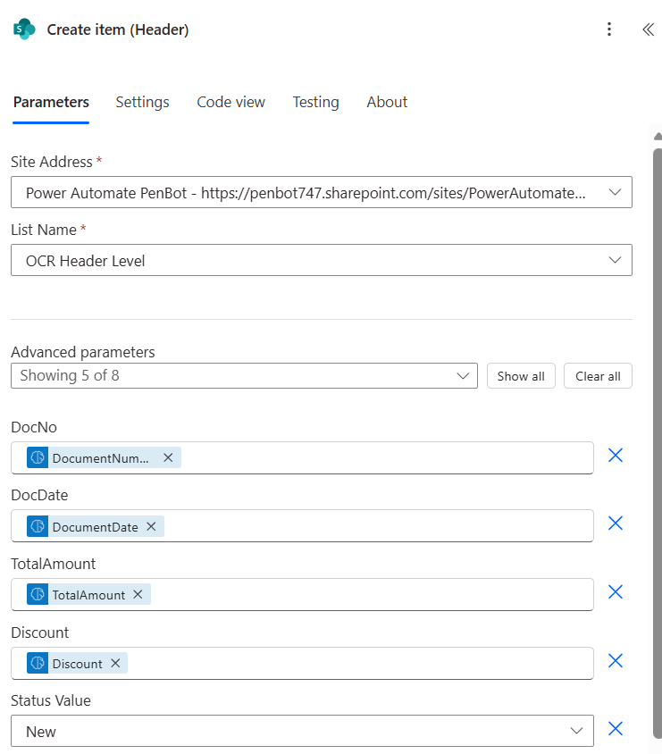 Map SharePoint column with dynamic content from ‘Run a prompt’ action e.g. DocNo, DocDate, TotalAmount, Discount
