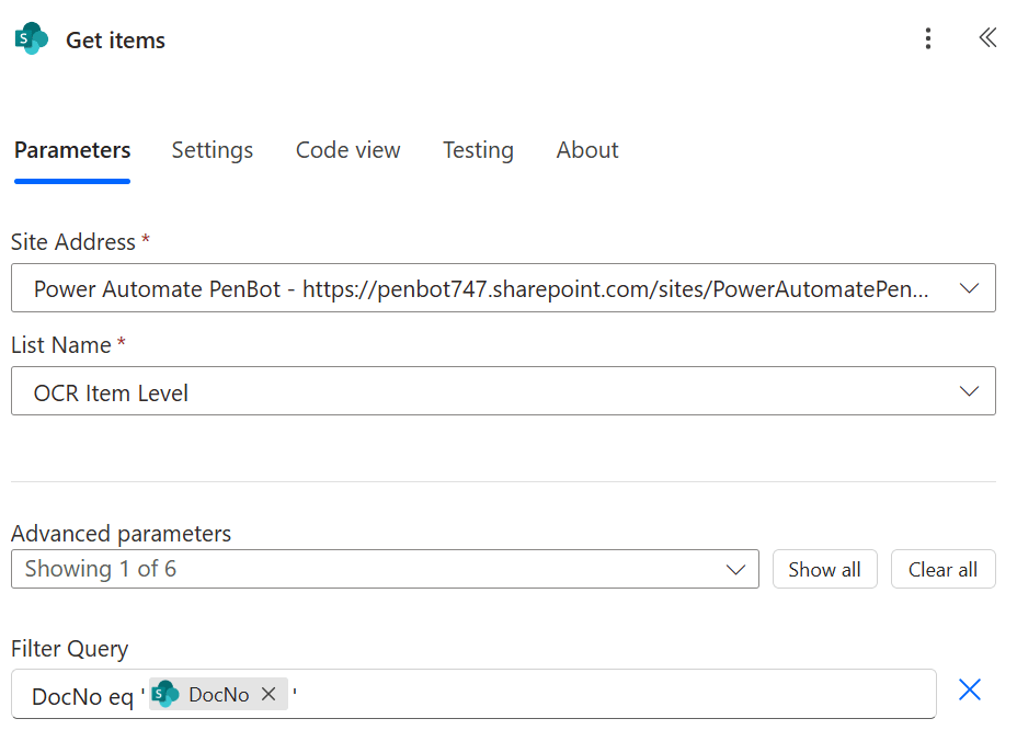 DocNo eq '@{outputs('Get_item')?['body/DocNo']}'