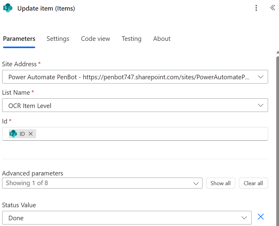 Status Value: select Done
