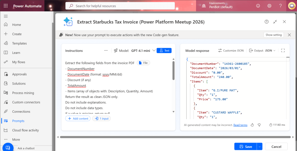 5. Run a prompt (AI Builder)